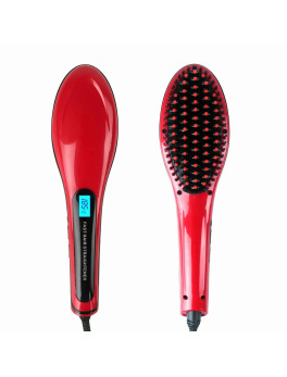 Electronic Fast Hair Straightener with Detangling Brush – up to 446 Degrees – Red