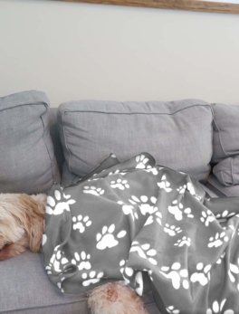 Evelots – Large 4 Foot Paw Print Pet Fleece Blanket – Ash Grey