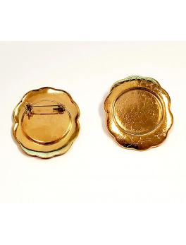 Elegant Gold Tone Floral Shaped Photo Brooch Pin